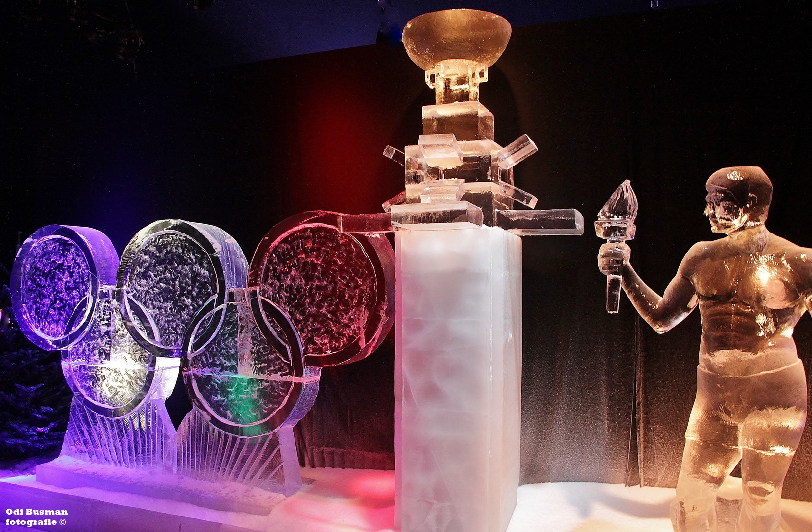 IMG_5621 Sjaak Swart voor het ijssculptuur van de iconische Ajaxfoto uit 1967 door Paul Huf